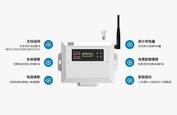 ACsmart-3系列三相電空調(diào)智能控制器,兼容市面上所有的普通空調(diào)(支持紅外信號(hào)控制的所有空調(diào));空調(diào)控制器內(nèi)置高性能芯片,并配套先進(jìn)的AI智能算法,支持人體探測、光感探測、溫度控制、電量統(tǒng)計(jì)等功能,實(shí)現(xiàn)對(duì)空調(diào)電源通斷控制、一鍵開/關(guān)機(jī)、設(shè)置運(yùn)行參數(shù)等遠(yuǎn)程控制功能,同時(shí)支持脫機(jī)控制空調(diào)運(yùn)行及多臺(tái)空調(diào)的聯(lián)網(wǎng)集中控制,便捷實(shí)現(xiàn)單臺(tái)或批量空調(diào)的遠(yuǎn)程集中控制和空調(diào)能耗管理。
